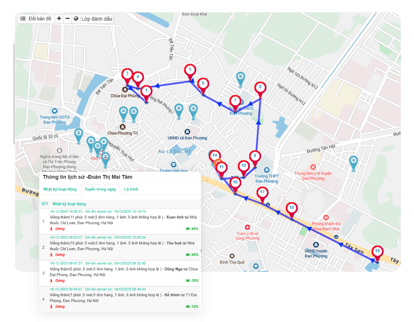 Không cần mất hàng giờ mỗi tuần để làm báo cáo hàng ngày hoặc hàng tuần theo cách thủ công. MobiWork DMS tự động theo dõi thời gian trên đường, quãng đường đã di chuyển, số lượng điểm bán đã chăm sóc, thời gian tiếp xúc với khách hàng, số lượng đơn đặt hàng đã gửi….