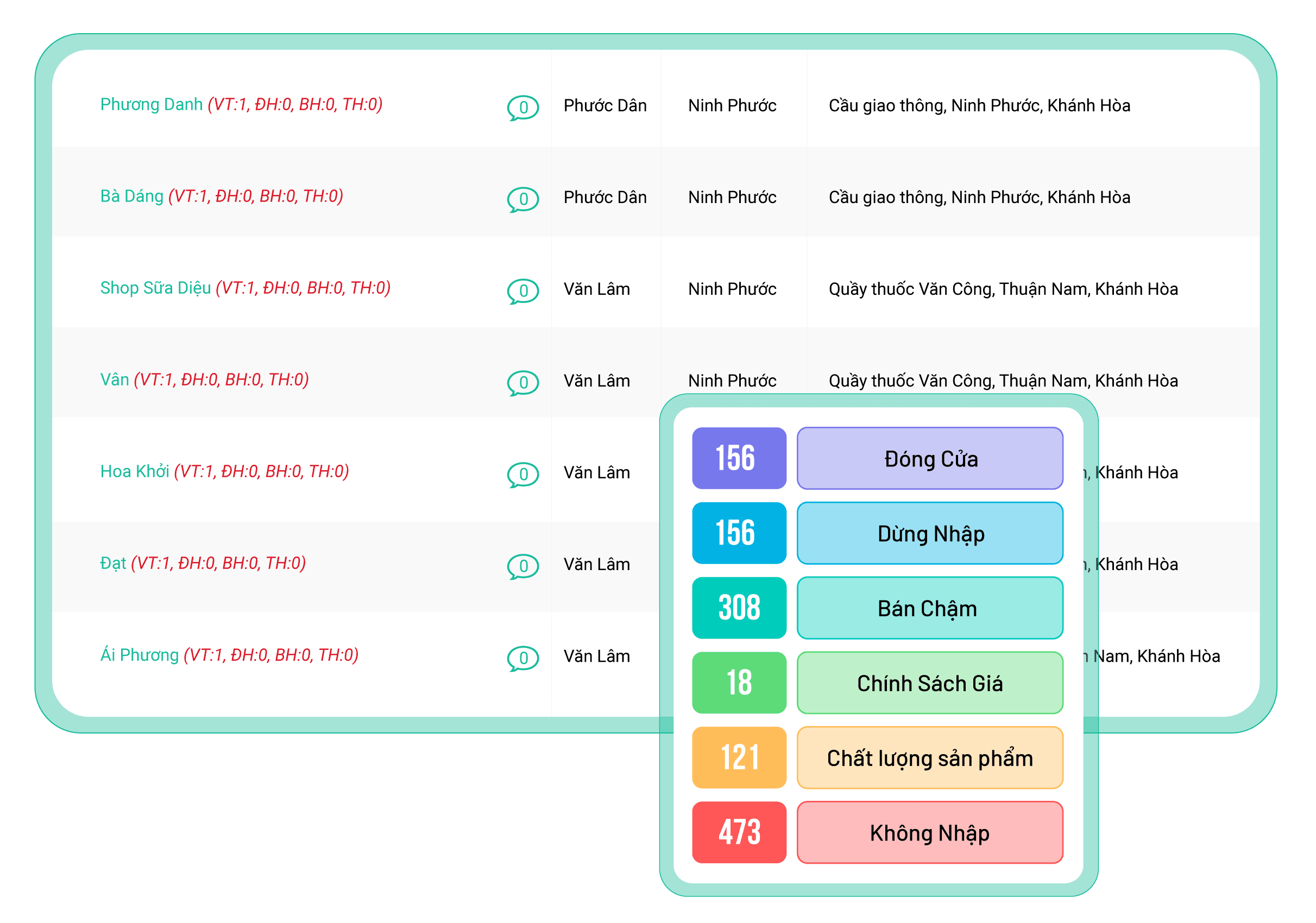 • Vấn đề Bán hàng: Các khó khăn, lý do khách hàng từ chối nhập hàng.