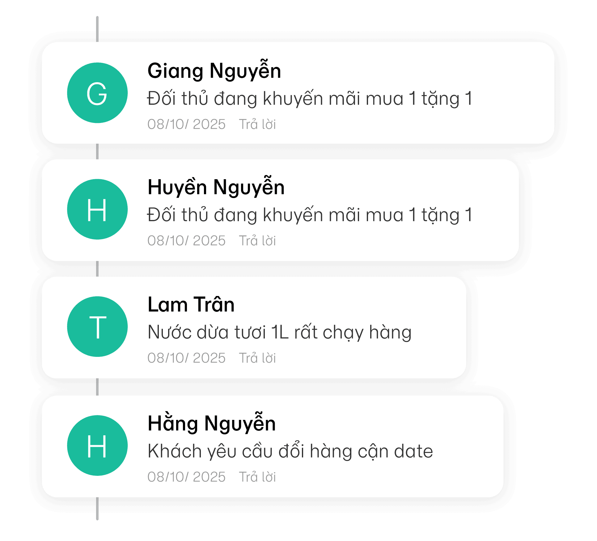 • Tình báo Cạnh tranh: Khuyến mãi, sản phẩm mới, chính sách giá của đối thủ.
